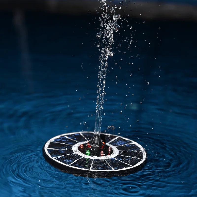 Flytande solcellsfontän med LED belysning från Heissner har 7 olika vattenfunktioner. Tack vare det integrerade 900mAh-batteriet lyser solcellsön även på natten. En automatisk dimningssensor slår automatiskt på solcellsön när det är mörkt. Inkl. 4 distanser till damm- eller poolkanten.